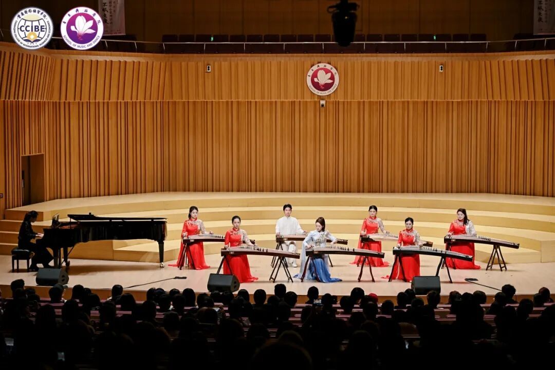 音乐会紧扣“中韩文化艺术交融”主题,由中韩艺术家与校内师生联袂呈现16个精彩节目,在传统与现代的碰撞中,尽显两国艺术的独特魅力与蓬勃活力。中国传统艺术篇章里,学院阿卡贝拉人声乐团演绎的《不要怕》,以纯净人声勾勒青春韵律;古筝重奏《唱支山歌给党听》婉转磅礴,彰显传统器乐神韵;钢琴协奏曲《黄河》第一乐章激昂澎湃,传递中华民族精神气魄;多民族民歌联唱《凤阳花鼓》等作品展现中国艺术的多元厚重;唢呐独奏《欢腾》则以欢快旋律点燃全场热情。