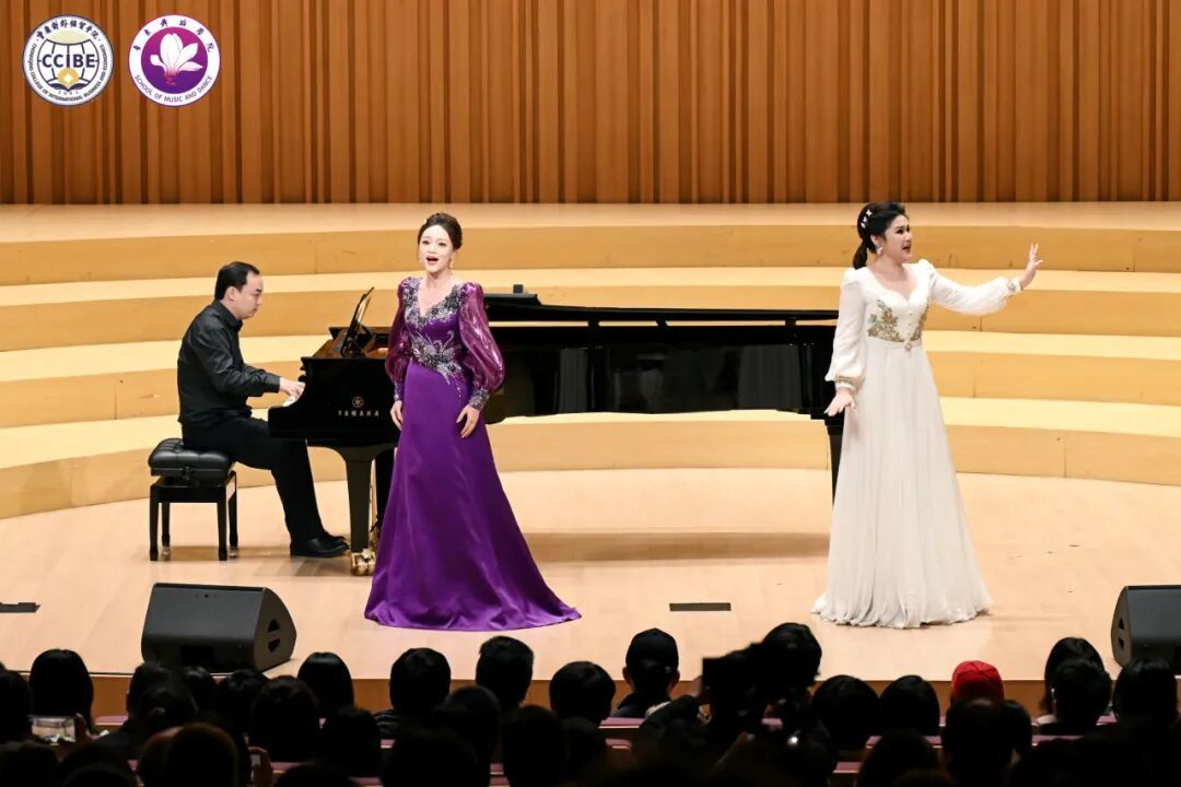 中外艺术融合环节中,韩国歌手李明铉、朴秀珍合作的普契尼歌剧《波西米亚人》选段《冰凉的小手》《人们叫我咪咪》以及浪漫二重唱《多么美丽的姑娘》实现了文化共鸣;尾声的合唱《细雨飘》(重庆酉阳民歌改编)与校歌《经世经贸》,将地方文化与校园精神相融,引发全场情感共鸣。